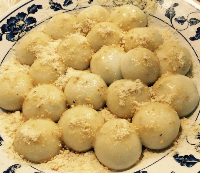 We ended our meal with Tang Yuan (Glutinous Rice Balls), sprinkled with crushed nuts. These yummy treats have a wide variety of fillings. The filling in these treats in particular had a mixture of seasame paste. I liked the combination of salt, savory and nuttiness of this Tang Yuan.