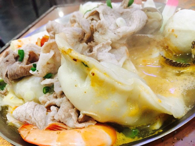 The prawns and dumplings were my faves in this hot pot. Check out the size of them, marinated in the yumminess of the egg and piping hot broth!